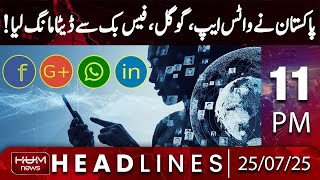 Hum News Headlines Today 11 PM | Pakistan Demands WhatsApp, Google & Facebook DataJuly 26, 2025Abdur Razzaq Sial0 Read More