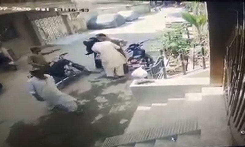 سی سی ٹی وی فوٹیج میں دیکھا جاسکتا ہے کہ ملزمان نے اسلحہ دکھا کر لوٹ مار کرکے فرار ہوگئے