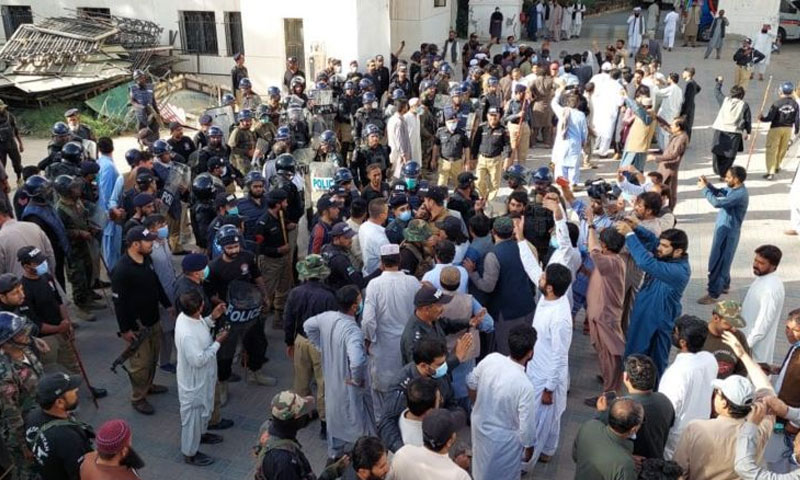 پولیس اور ایف سی کی بھاری نفری نے موقع پر پہنچ کر علاقے کو سیل کر دیا۔