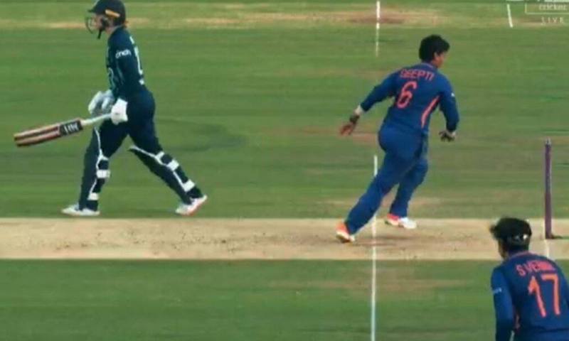 دیپتی شرما نے چارلی ڈین کو بال پھینکے جانے سے قبل ہی کریز سے آگے نکلنے پر آوٹ کردیا