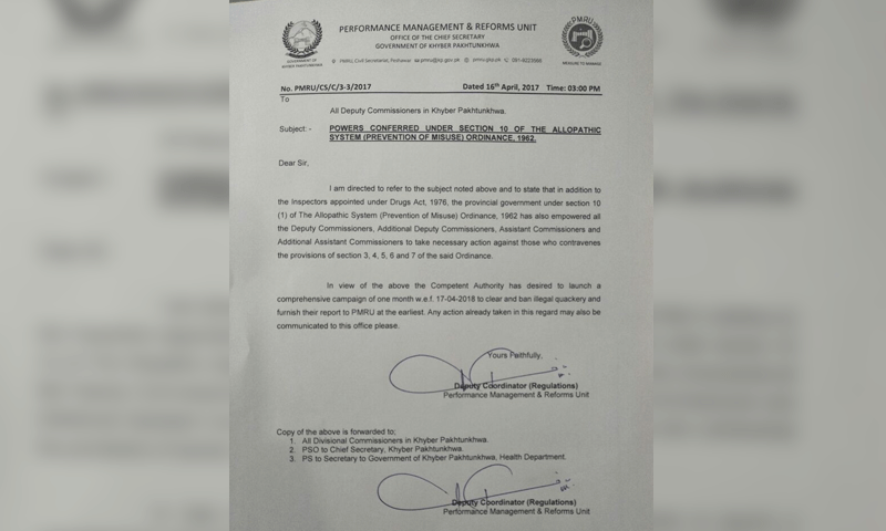 پشاور: صوبائی حکومت نے خیبرپختونخوا میں جعلی ڈاکٹروں کے خلاف کریک ڈاؤن کی تیاری مکمل کر لی ہے۔ ہم نیوز کے مطابق صوبے بھر میں جعلی ڈاکٹروں اور غیر قانونی طبی مراکز کے خلاف کارروائی کے لئے احکامات جاری کر دیے گئے ہیں۔ چیف سیکرٹری آفس کے ذرائع کے مطابق جعلی ڈاکٹروں کے خلاف مہم 17 اپریل سے شروع ہو گی جو آئندہ ایک ماہ تک جاری رہے گی۔ خصوصی مہم کے دوران ڈپٹی کمشنرز، اسسٹنٹ کمشنرز اور ایڈیشنل اسسٹنٹ کمشنرز کو ڈرگ انسپکٹر کے اختیارات تفویض کئے گئے ہیں۔ اتائیوں کے خلاف مہم کے لئے صوبے کے تمام اضلاع کے…