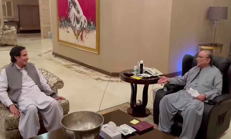 پرویزالہٰی بلاول ہاؤس لاہور پہنچے تو سابق صدر آصف علی زرداری نے ان کا خود استقبال کیا۔