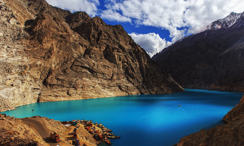 ہنزہ: پاکستان کی حیسن ترین وادی ہنزہ میں حادثاتی طور پر وجود میں آنے والی ”عطا آباد جھیل” سیاحوں کے پسندیدہ مقامات میں سے ایک بن چکی ہے۔ یہی وجہ ہے کہ سیاحوں کی بڑی تعداد نے اس جنت نظیر مقام کے اطراف ڈیرے ڈالے ہوئے ہیں۔ گلگت سے 120 کلومیٹر کے فاصلے پر وادی گوجل میں واقع عطا آباد جھیل اپنے نیلے، شفاف اور میٹھے پانی کی وجہ سے بے حد مقبول ہے جبکہ اس کے ارد گرد موجود بلند چوٹیاں اس کی خوبصورتی میں مزید اضافہ کردیتی ہیں، دیکھنے والے کو یہ منظر کسی جنت سے کم نہیں…