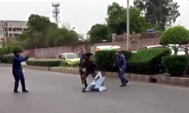 ہم نیوز کو موصول ہونے والی ویڈیو میں دیکھا جاسکتا ہے کہ سکیورٹی اہلکار شہری کو گھسیٹ کر سڑک کے کنارے لے جارہے ہیں