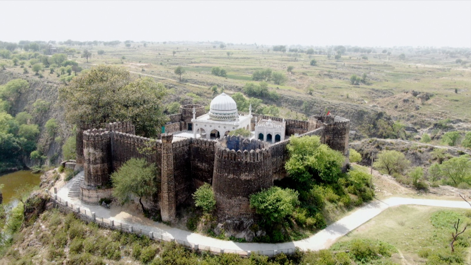 مضبوطی سے قدم جمائے بلند فصیلیں اور حضرت صاحبزادہ عبدالحکیم کے مزار کا سفید گنبد تاریخی ورثے کا دورسے پتہ دیتا ہے۔قلعے تک پہنچنے کےلئے ایک چھوٹی سڑک ہے جو قلعے کی دیواروں کے ساتھ بنائی گئی سیڑھیوں تک لے جاتی ہے۔یہ سیڑھیاں قلعے کے داخلی راستے تک پہنچنے کا ذریعہ ہیں۔سیڑھیوں کے داخلی راستے پرنصب سنگ مرمر پرحضرت صاحبزادہ عبدالحکیم کی سوانح عمری سے متعلق تحریر درج ہے جو موجودہ سپیکرقومی اسمبلی راجہ پرویز اشرف نے 1996 نے لکھوائی۔