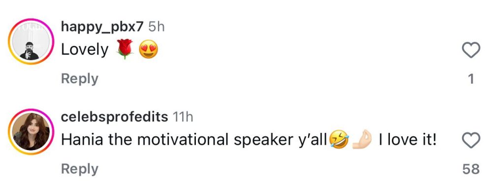 واضح رہے کہ ہانیہ عامر اکثر اپنی سوشل میڈیا پوسٹس اور ویڈیوز کے ذریعے نوجوان خواتین کو اپنے تجربات اور عملی مشورے شیئر کرتی رہتی ہیں۔