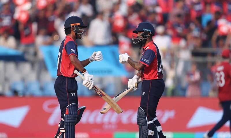 نیپال کی جانب سے کوشل بورٹل نے 29 ، روہٹ پاڈل 39 ، دیپندرا سنگھ 44 اور لوکیش بام نے 39 رنز کی جارحانہ اننگ کھیلی۔ انگلینڈ کے لیام ڈاوسن نے 2 وکٹیں حاصل کیں۔