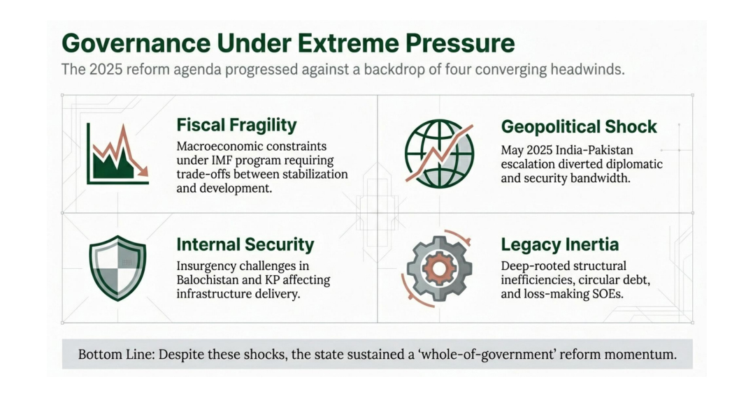 رپورٹ کے مطابق2025 میں 135 سے زائد وفاقی اداروں میں 600 اصلاحاتی اقدامات کیے گئے۔ادارہ جاتی سطح پر اصلاحات کا مقصد وقتی فیصلوں کے بجائے دیر پا نظام کا قیام واضح رہا۔