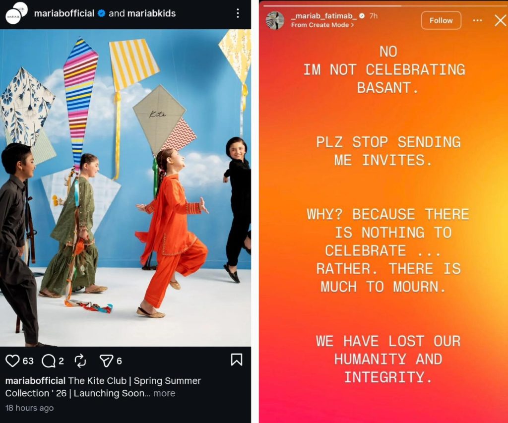 تاہم، اسی کے ساتھ پتنگ کے تھیم پر مبنی “The Kite Club” کلیکشن لانچ کرنے پر صارفین نے اسے دوہرا معیار قرار دیا۔ سوشل میڈیا پر کئی افراد کا کہنا ہے کہ اگر بسنت کو ناپسند کیا جاتا ہے تو پھر اسی سے جڑے تصور کو تجارتی مقاصد کے لیے استعمال کرنا تضاد ہے۔