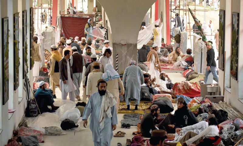 آزاردی مارچ کے شرکاء جلسہ ختم ہوتے ہی رات کو پشاور موڑ اور کشمیر ہائی وے پر قائم میٹرو بس اسٹیشنز کا رخ کر لیتے ہیں