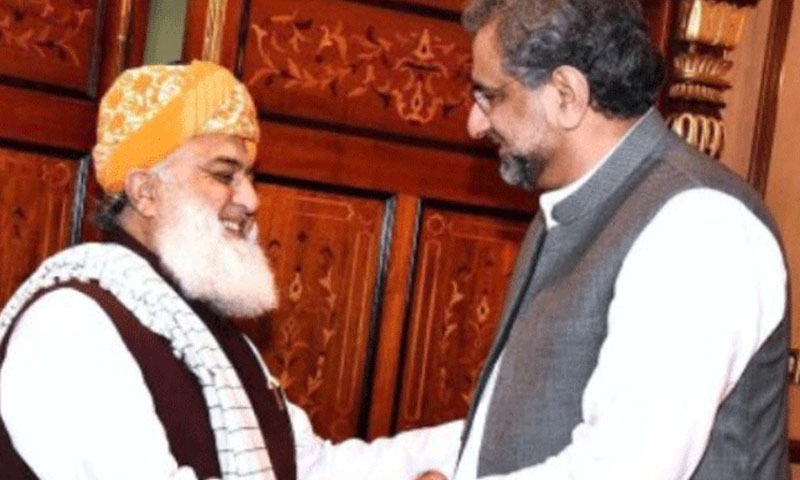 احتجاجی مظاہروں کی منسوخی کا فیصلہ مولانا فضل الرحمان اور شاہد خاقان عباسی کے درمیان ہونے والی بات چیت میں کیا گیا۔