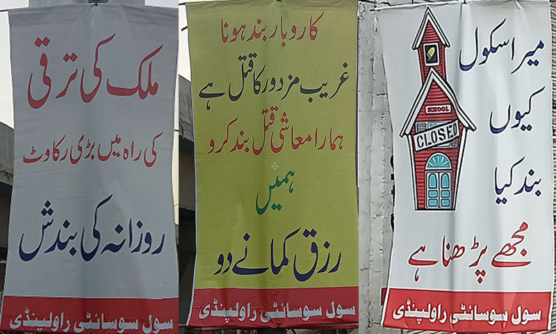 راولپنڈی میں احتجاجی مظاہروں کیخلاف بینرز لگ گئے