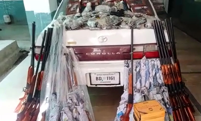 پولیس کے مطابق ناکہ بندی پر گاڑی سے 278 پستول، 40 بندوقیں، پانچ ہزار کارتوس برآمد کر لیے گئے
