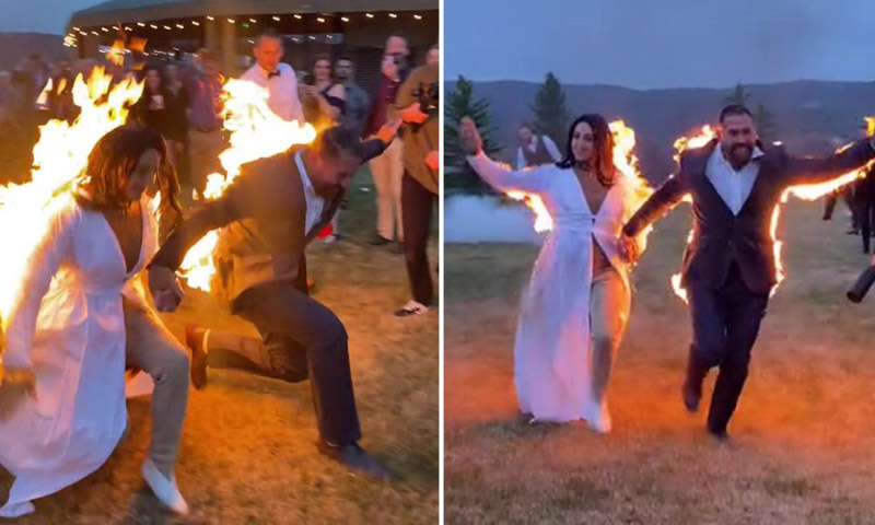 فوٹو شوٹ کے دوران ان کے ساتھ ساتھ آگ بجھانے کا عملہ بھی موجود ہے۔