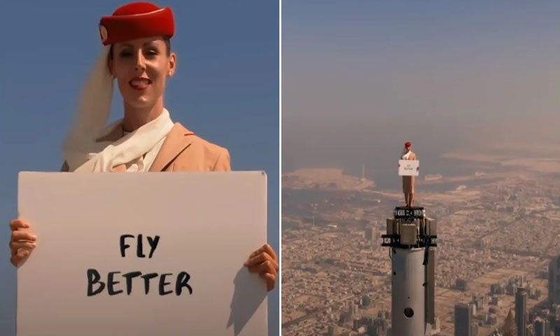 فضائی کمپنی ایمریٹس کی تشہیری مہم میں ماڈل برج خلیفہ کی چوٹی پر چڑھ گئیں
