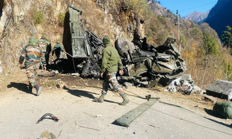 گاڑی کو حادثہ ڈھلوان سے نیچے پھسلنے پر پیش آیا، بھارتی میڈیا