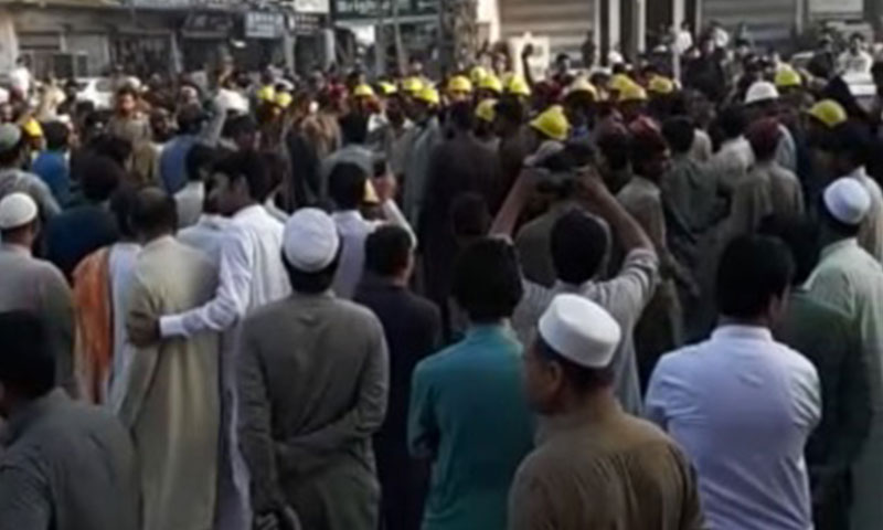 شدید گرمی میں مزدوروں نے اپنے بچوں کے ہمراہ مظاہرے میں شرکت کی