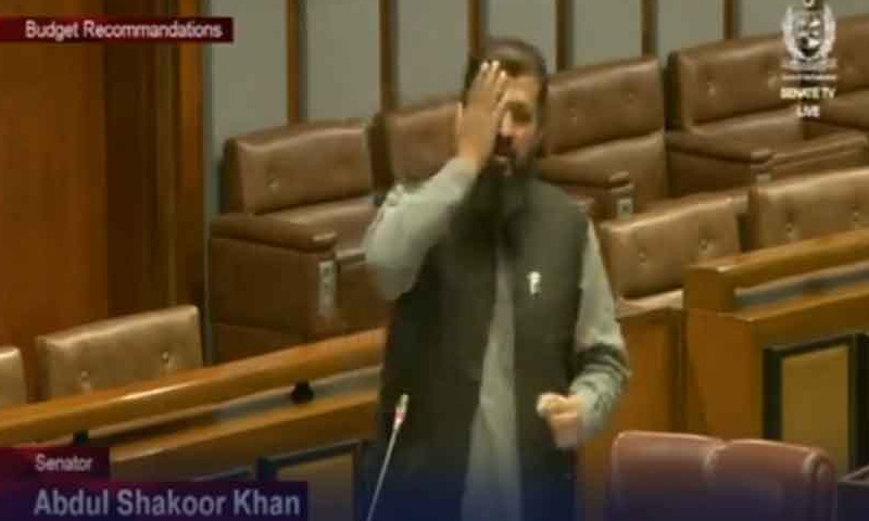 سینیٹ اجلاس: سینیٹر عبدالشکور خان نے دوران خطاب اپنے منہ پر تھپڑ مار لیا