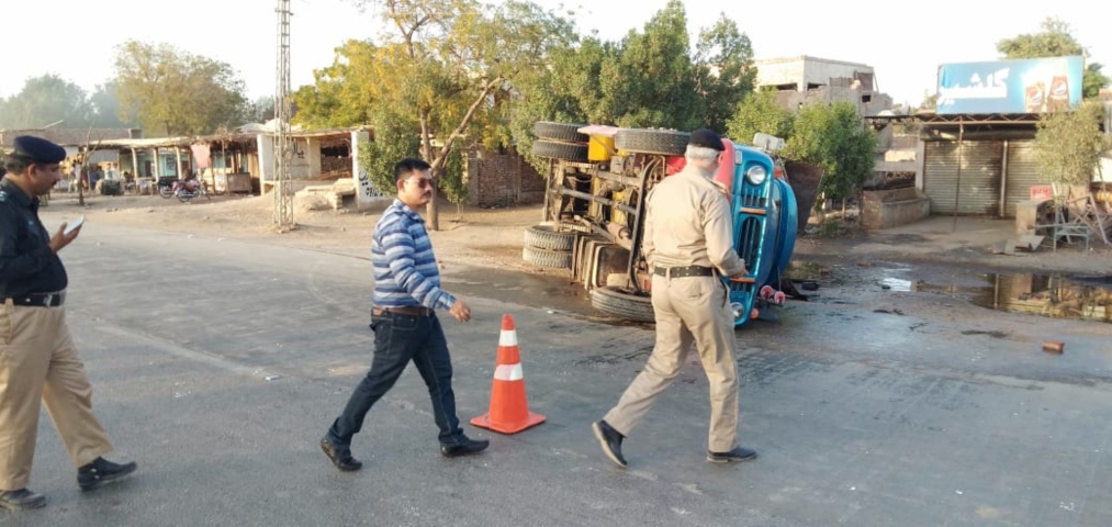 آئل ٹینکر کوحادثہ پیدل شخص کو بچاتے ہوئے پیش آیا