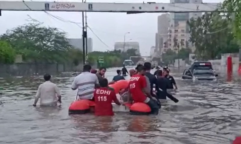 جناح انٹرنیشنل ایئرپورٹ کا رن وے مکمل طور پر پانی میں ڈوب گیا ہے۔