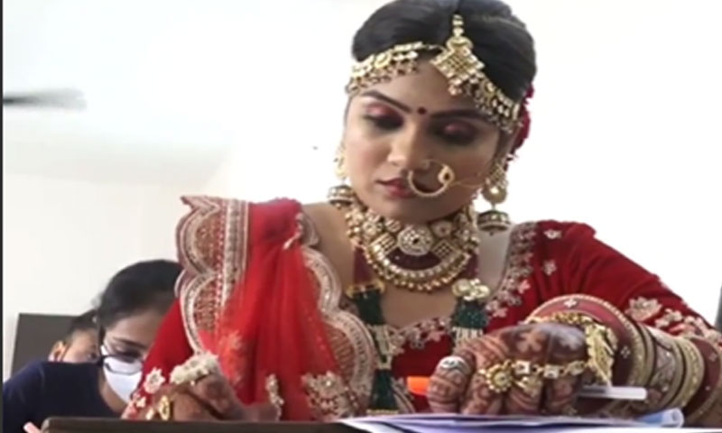 دلہن عروسی لباس میں ہی امتحان دینے پہنچ گئی