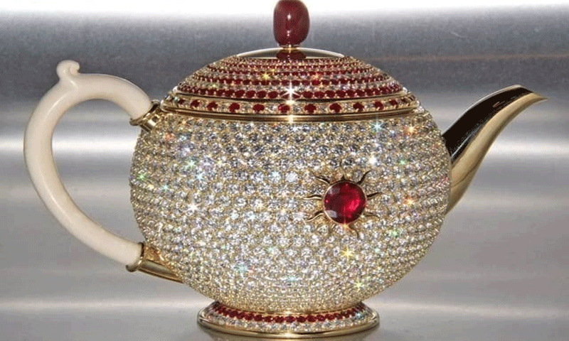 چائے کی کیتلی پر قیمتی ہیرے بھی لگائے گئے ہیں۔