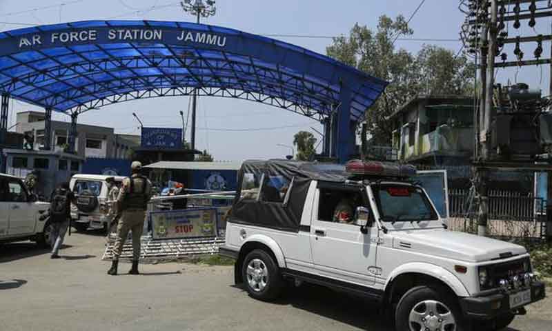 جموں میں واقع بھارتی فضائیہ کی ایک بیس پر ڈرون کے ذریعے دھماکہ خیز مواد سے حملہ کیا گیا جس میں دو اہلکار زخمی ہو گئے اورعمارت کی چھت تباہ ہو گئی۔