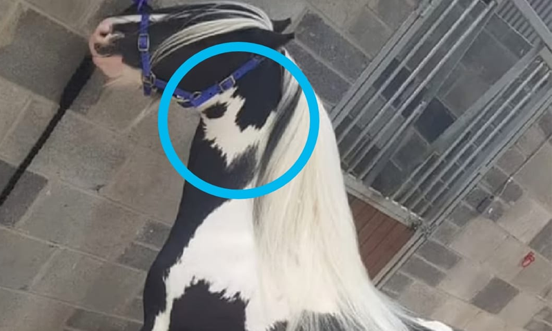 گھوڑے کی گردن پر سفید اور سیاہ بالوں سے ایلوس پریسلے کی تصویر بنی ہوئی ہے