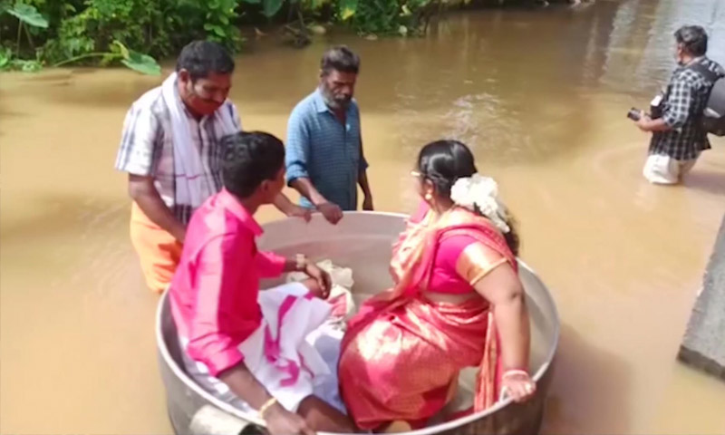 جوڑے نے مندر سے لیے اس دیگچے کو کشتی بنا لیا