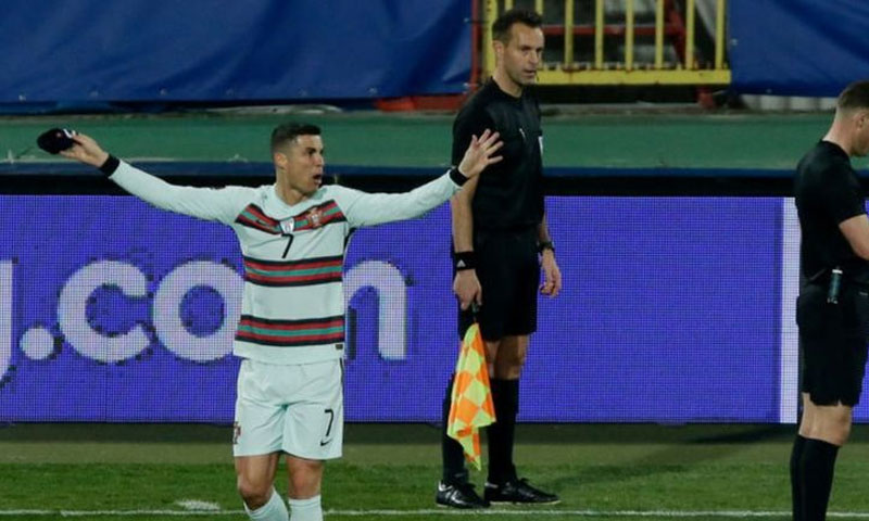 میچ کے آخری لمحات میں رونالڈو نے گول کیا لیکن ریفری نے گول نہیں دیا