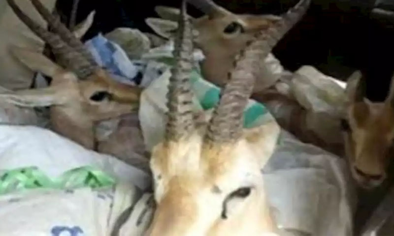 وائلڈ لائف اہلکاروں نے چولستانی علاقے 111 ون ایل میں ڈیرے میں چھپائے گئے پانچ نایاب نسل کے چنگارہ ہرن برآمد کر لیے