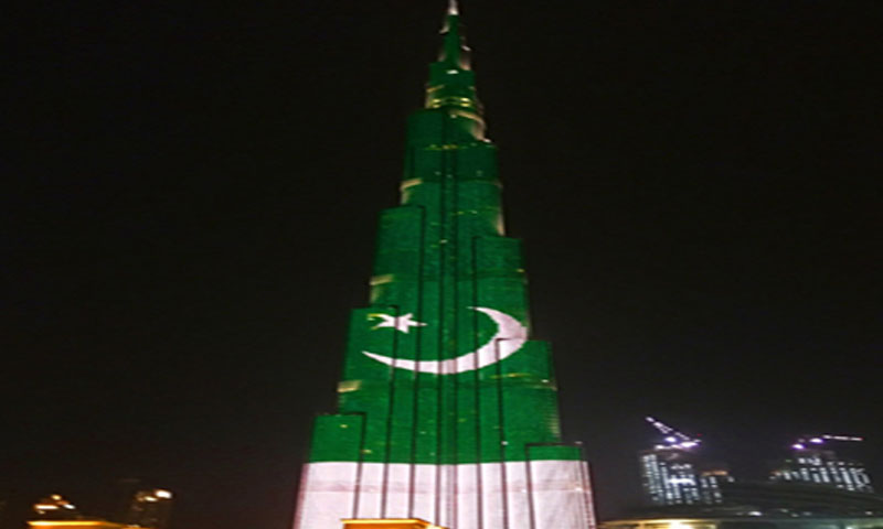 دبئی: برج خلیفہ پاکستانی جھنڈے سے سج گیا