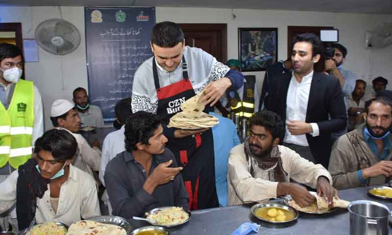 پناہ گاہ کا دورہ: معروف ترک شیف نے مخصوص انداز میں لوگوں کو کھانا پیش کیا