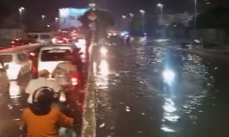 کراچی کی شاہراہوں پر سیلابی صورتحال، گاڑیاں ڈوب گئیں