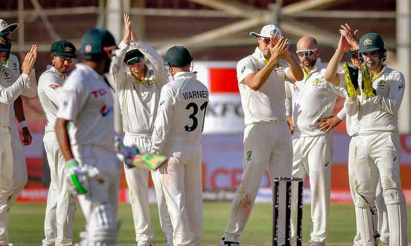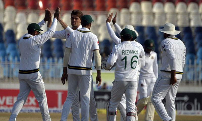 کھیل کے آخری روز پاکستانی گیند بازوں نے چار وکٹیں حاصل کرکے اپنی ٹیم کو 0-1 کی سبقت دلادی