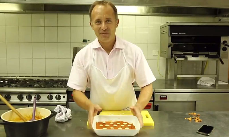 برطانوی سفیر نے گاجر کا حلوہ بنانے کے بعد باداموں سے اس کی سجاوٹ بھی کی۔