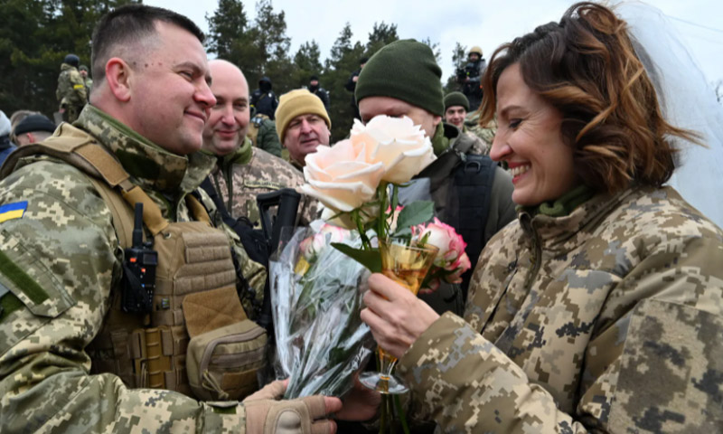 دارالحکومت کیف میں دوران ڈیوٹی فوجی جوڑے نے ایک ساتھ زندگی گزارنے کا عہد کیا